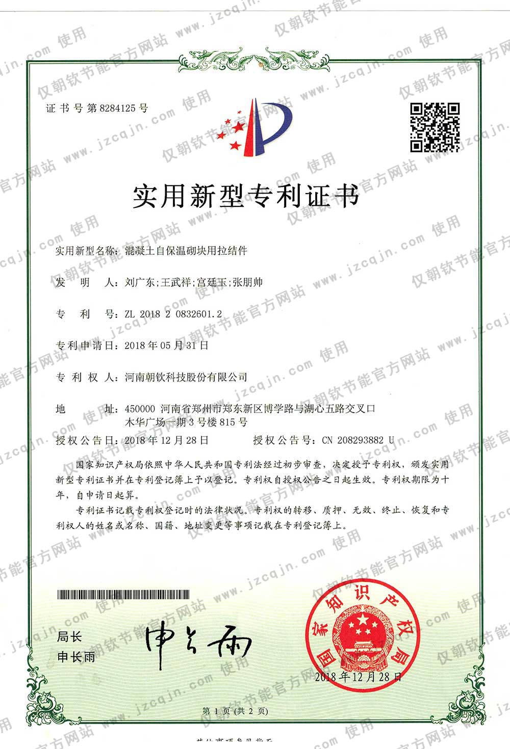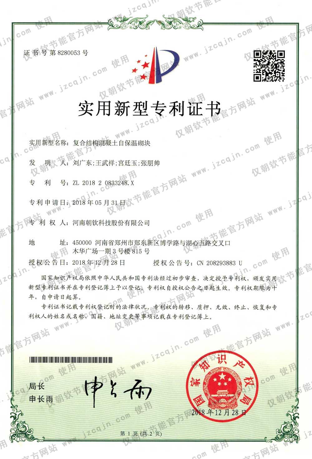 朝欽節(jié)能擁有數(shù)十項(xiàng)科研成果與專(zhuān)利,及河南省建設(shè)廳等機(jī)構(gòu)鑒定證書(shū),并發(fā)布了數(shù)項(xiàng)企業(yè)標(biāo)準(zhǔn)。